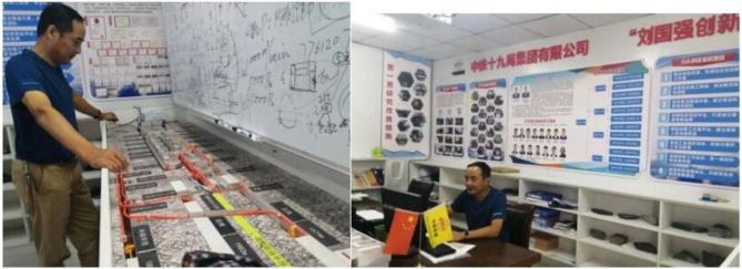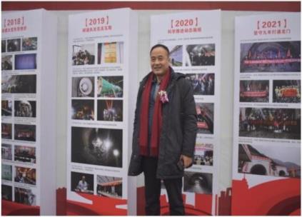 公司總經(jīng)理潘開方在項(xiàng)目年進(jìn)程2019 年攻克難題的宣傳欄旁留影, 心中滿是喜悅!
