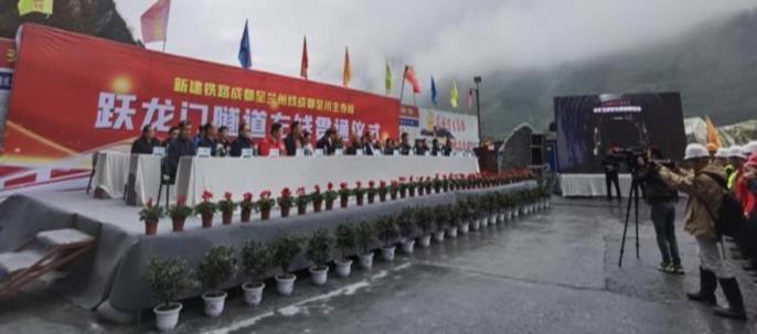 2021 年11 月28 日應(yīng)中鐵十九局集團(tuán)有限公司成蘭鐵路指揮部邀請(qǐng),我公司代表出席了成蘭鐵路控制工程躍龍門隧道左線貫通慶祝儀式。成蘭鐵路是我國(guó)繼青藏鐵路之后又一條海拔在3000 米以上的高原鐵路,線路由成都平原向青藏高原攀升過程中,遇到的首要挑戰(zhàn)就是穿越龍門山地震斷裂帶。28 日這項(xiàng)“超級(jí)工程”迎來重大建設(shè)節(jié)點(diǎn),隨著最后 1 米圍巖被鑿?fù)ǎ瑲v經(jīng)9 年建設(shè)的成蘭鐵路躍龍門隧道左線順利貫通。