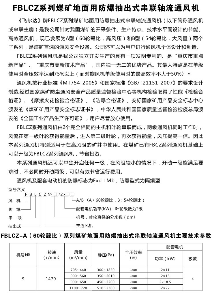 FBLCZ系列礦用地面防爆抽出式串聯(lián)軸流通風機